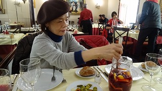 先日、1月半ばに「個人旅行」の ご夫妻をご案内しました。 *今日は、近距離新幹線にて、トレド観光です。 朝、ホテルにお迎えに行き、 市バスで駅に行きました。 今日は、マラソン。。。。。 「アトーチャ駅」 近距離新幹線で トレドに到着です。 トレド駅 2階建ての「観光バス」に乗りました。 「アルカンタラ橋」 16世紀の「新ビザグラの門」 「太陽の門」 これから、旧市街の散策です。 カテドラル(大聖堂) このブティックの地下が、 1世紀のローマの『スパ』です。 ちょっと休憩。。。。 「チョコレート」と「チュロス」 「バル」にて、軽い昼食です。 「鹿肉の煮込み」 「ソコ ドベール広場」 市バスに乗って、トレド駅へ マドリッドまで、30分です。 マドリッドの駅の向かいの 「レイナソフィア芸術センター」へご案内しました。 『ダリ』 子供達が、「戦争記録フィルム」を見てます。 この後に、『ゲルニカ』 。。。。。。 。。。。。。。。。。。。。。。。。。。。。。 『ダリ』 ピカソ 「セシーナ」(牛の生ハム) 「フェデリーコ ガルシア ロルカ」 マヨール広場 『フラメンコ』へご案内しました。 「ソル広場」 市バスにて、ホテルまでお送りしました。 。。。。。。。。。。。。。。。。 お元気で、またお会いしましょう ! PR 先日、1月半ばに「個人旅行」の ご夫妻をご案内しました。 *「マドリード市内観光+バル巡り」 市バスでの市内観光です。 ホテルから、市バスに乗って、旧市街の公園へ レティーロ公園 『堕落天使』 闘牛場へ 市バスで、スペイン広場へ 歩いて、エジプトの遺跡を見に行きました。 「デボ寺院」 徒歩にて、王宮へ 王宮の前の大聖堂 オリエンテ広場 これから、昼食です。 街の中心「ソル広場」 パラスホテルで 少し休憩しました。 「ホセイドン」の噴水 これから、「プラド美術館」です。 。。。。。。。。。。。。。。。。。 これから、下町の『バル巡り』 一軒目 「鱈のフライ」専門店 2軒目 普通のおっちゃんが行く「BAR・バル」 マヨール広場 ソル広場 シベーレス広場 市バスに乗って、ホテルへ マドリッド 泊 翌日は、 「トレド観光」+フラメンコをご案内しました。 『太陽の門(ソル)広場』 「ソル広場」で、まもなく「カウントダウン」が始まり、 ・・・12個の「ぶどう」を食べます。・・・ スペインでは、あと35分程で新年を迎えます。 日本ではもう新年ですね。 新年あけましておめでとうございます。 今年も宜しくお願いします。 AIN日本人通訳協会 会長 佐々木郁夫 *************************************** お正月、そして、2月、3月の 『個人旅行』のお申し込みを 受け付けております。 *スペイン・ポルトガル『個人旅行』のお勧め <クリック *『成田=マドリッド直行便』での旅* *スペイン、ポルトガル 専属の「観光通訳ガイド」が ************************ <個人旅行のお勧め> ********** スペイン、ポルトガル 個人旅行 専属の「観光通訳ガイド」が案内する旅 ************ *************** 『新婚旅行』、家族だけの『気ままな旅』、 『仲間同士の「漫遊の旅」』、マイレージが貯まったので 『自由な個人旅行』がしたい。また、急に休暇が取れたので、 スペイン(ポルトガル)の旅に行きたい、、、、、 スペイン、ポルトガルの『個人旅行』 を計画されてる皆様、 『オリジナル企画』を創り、楽しい旅を演出します。 メールのやり取りで、皆様の『オリジナルの旅』が生まれていきます。 スペインへ、そして、ポルトガルの旅に興味のある皆様から送られたメールに、 私が即、メールにて返事をお送りし、『自分たちだけのオリジナルの旅』の企画が、 皆様と私とで生まれていきます。 ************ 『成田=マドリッド・直行便』 イベリア航空で行く<個人旅行> **************** *成田から、面倒な乗換えは在りません。 マドリッドに直行で到着です。 私がマドリッドの空港で、お迎えして、 マドリッドから皆様のご希望の 『オリジナル企画の旅』が始まります。 マドリッドから、 1)南スペイン・アンダルシア → バルセロナ→ マドリッド 2)北スペイン バスク地方 → バルセロナ→ マドリッド 3)ポルトガル そして、 →スペインのガリシア → マドリッド この『直行便』に合わしました、 皆様のご希望のオリジナルの『漫遊の旅』を 企画し、ご案内しますので、メールでお問い合わせ下さい。 上記の旅に付いての、 お問い合わせ、お申し込み、ご相談は < ご参考 > ***************************** 2017年 イベリア直行便 ***************************** ・・・・・・・・・・・・・・・・・・・・・・・・・・・・・・・・・・・・・・・・・・・・・・・・・・・・・・・・・・・・・・・・・・・・・・・・・・・・・ <イベリア直行便> *2017年1月16日 成田 出発 、1月24日 マドリッド出発 、1月25日成田到着 Tokyo – Madrid 月曜日 16-1-17 11:20 - 17:30 フライト時間14h 10m Iberia 直行 - NRT,MAD Madrid – Tokyo 火曜日 24-1-17 12:20 - 9:35 フライト時間13h 15m Iberia 直行 - MAD,NRT 1 大人 総額: 82,920.00 JPY *2017年 1月9日 現在の「ネット価格」・
