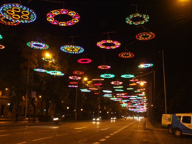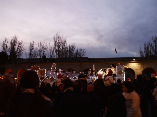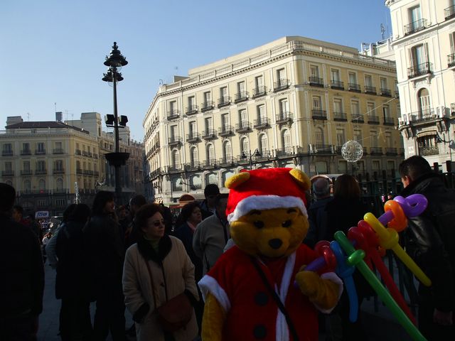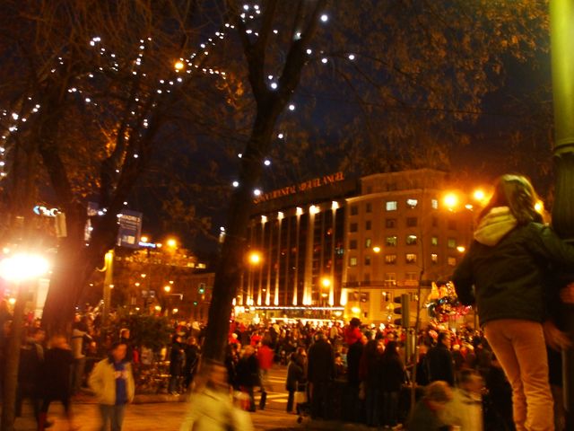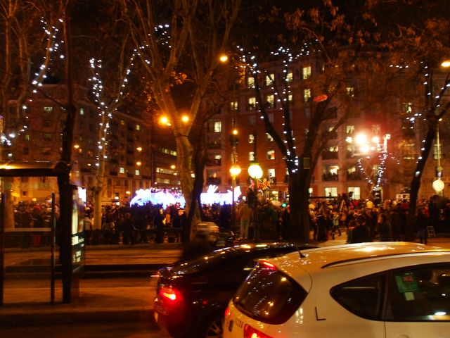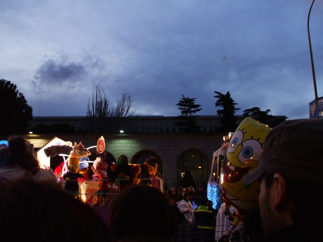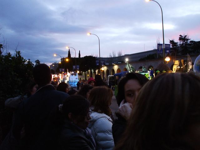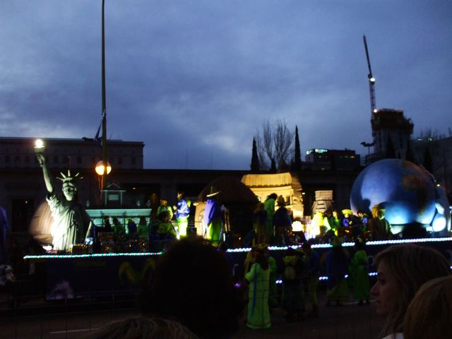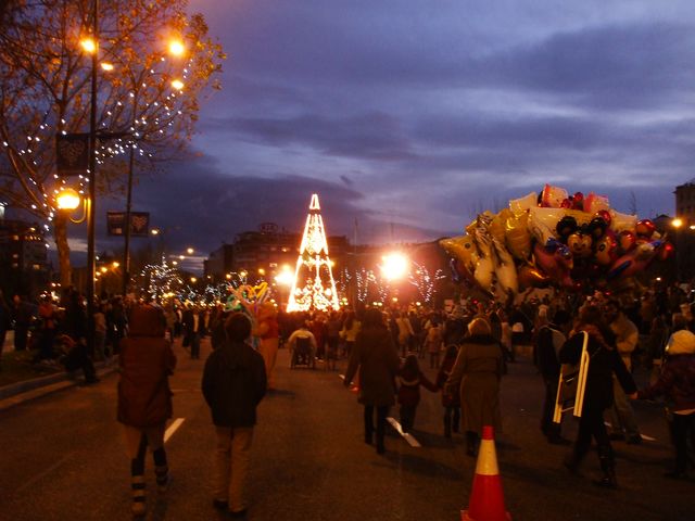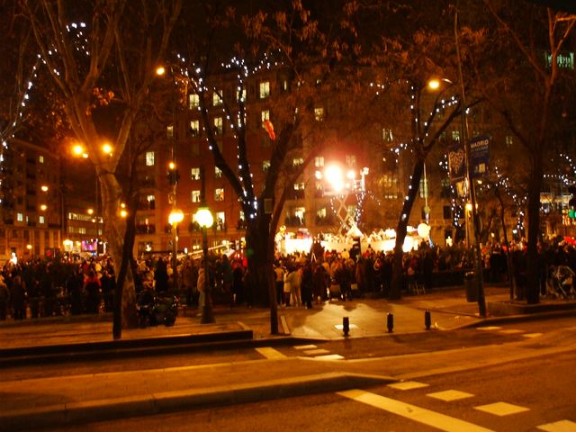 でここの子供達はクリスマス、2回プレゼントがもらえるわけです。24日はサンタ、クロース、1月6日は東方3博士のプレゼントな訳です。で、その前日の5日の東方3博士のパレードが実に絢爛豪華なのです。30以上の豪華な山車がでるのですが。私は山車のでる出発寸前に行ったので凄い人々(特に子供ずれで一杯ではしごを持って来ている人もいました)。山車からは沢山のキャラメルが子供達のために投げられます。この不景気な時に実に和やかな風景です。私は遠くからデジカメで写真を撮ったので山車が良く見えなくて残念ですが雰囲気は解って戴けるとおもいます。実際この山車を見たい方はマドリッドまで来てください。スペインのあちこちの街で山車が出ると思いますが。 |
