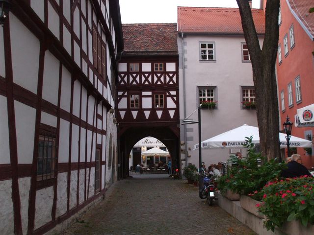 最初にこの街の名物、クレーマー橋をご紹介。橋上の両サイドにお店があるのは フローレンスのポンテ、ベキオににています。 この橋上のなかで見かけたマイセンの磁器のお店、日曜日で店が閉まっており、ウインドウから写真を撮る、残念ながらこの写真では値段が見えませんが、当然の事ながら非常に高いです。 橋を外側から見ると 可愛らしい街であちこちに花が見わたります。 街をぶらぶら歩いて、食品店に入ったら、なんと日本のお寿司が売られていました。 魚市場広場、多分、昔、魚の市が開かれたのでしょう。 黒い角の家、どうってことのない建物で今はバールになっていて人々はテラサで コーヒーやビールをたのしんでいるけれど、昔、ルターの仮綴冊子が4冊、彼の最初の賛美歌の本も印刷されたと言うところ。 クレマー橋に入る手前の広場 手当たり次第に動き回って出会った通り |