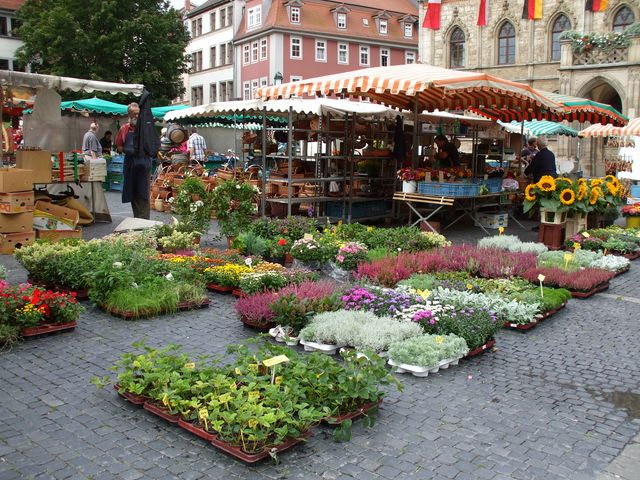 まずはゲーテとシラーの銅像から始めます、夢見がちが顔をしているのが、シラー、これを言っていたのは、旅の仲間の17歳の少年。 クラナーハ 1472年ー1553年、1500年頃よりウイーンで活動始めたドイツ、ルネッサンス派の画家、その後、ウイッテンブルグに招かれ移住、なくなる前の数年を過ごしたのがこの家。 ゲーテの家 リストの家 シラーの家 お花屋さんが一杯の支庁舎前の広場 芸術の都のワイマールで私はお土産に玉ねぎを買った、この土地、特産とのこと、ともかくも、街を歩くとやたらと薬草植物、及びをその種を売っている店が多い、今はやりのアロエ、ギンゴ。。。。。
