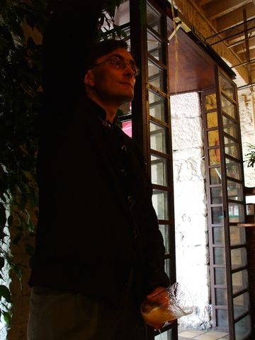 居酒屋のお兄さんが、私のためにシードラ(アストリア地方独特のりんご酒)を注いでいるところ