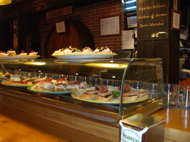 今年のスペインの夏はちょっとおくれてきましたが、今日は6月25日、ここのところ38度から40度の気温が続いています。こんな時には冷たいビールが最高、スペインにはこんな感じのバールがあちこちに有り、カウンターには20種類以上のつまみ(タパス)が並びます、こんなつまを取ってビールを飲んだら最高。