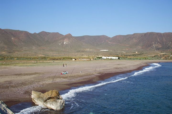 人々がのんびりと釣りを楽しむ姿がみえる。