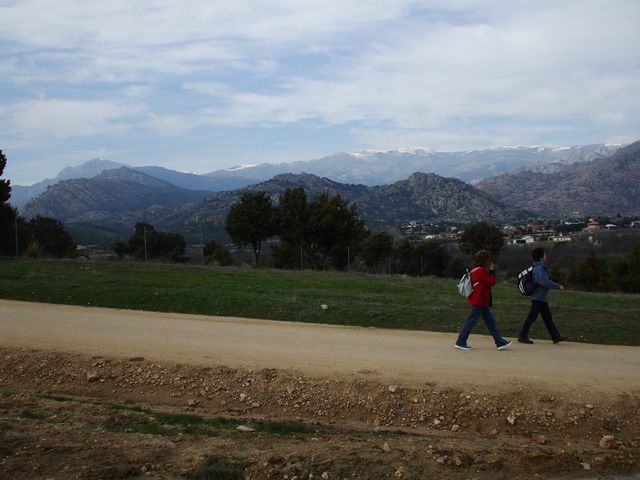 マドリッドの北に40分も車を走らせると、こんな場所に出る、guadarrama山脈の麓。昔、動物達が通った道をかりて、8キロのトレッキングが始まる、7.8歳の子供達は走っている。私はふーふー汗かいて、あとを追う。