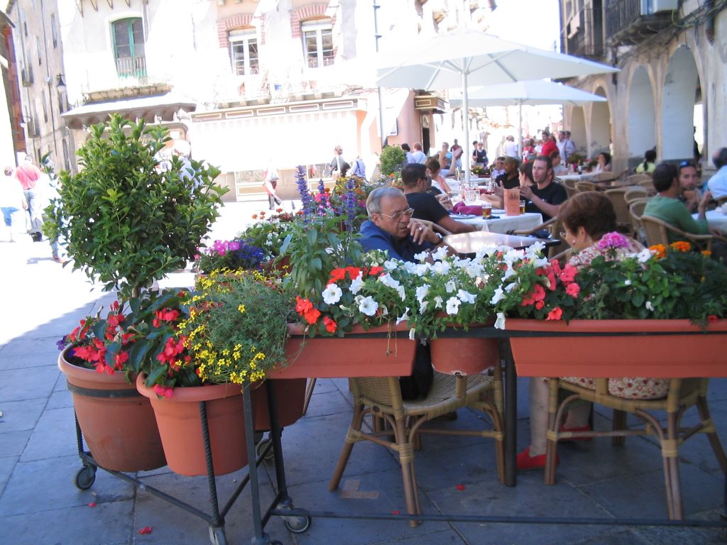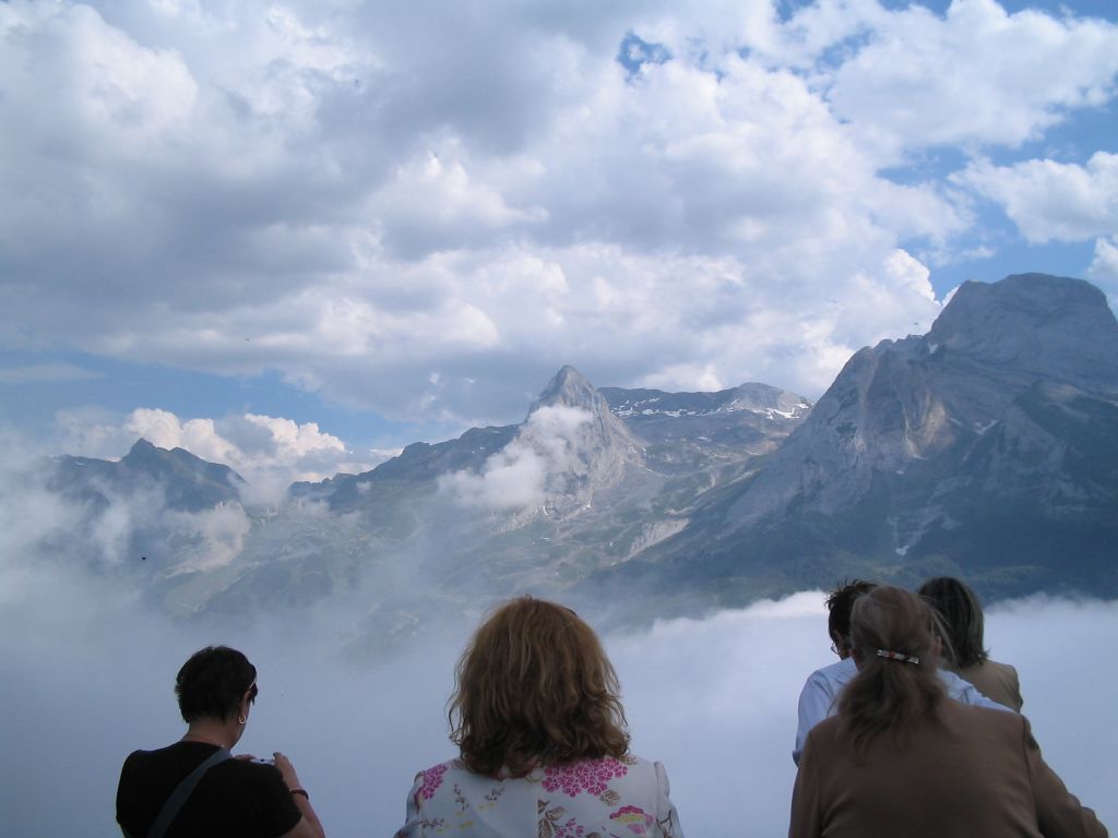 上記の写真はフランス領から眺めたピレネー。丁度、我々がその場所に着いた時には霧がたちこめて、幻想的だった。霧は直ぐ消えていったけれど。。。。 ひとくちにピレネー山脈といっても、スペイン側では、パイス、バスコ、ナバラ。アラゴン。カタルーニャと4つの地方に属する、今回はスペインのアラゴン地方とピレネーの向こう側の国、フランス領にまで足を伸ばす、と言っても我々の泊まったフォルミガルの街から6キロでフランス領に入ってしまうわけだけれど。。まずはマドリッドを出てフォルミガルに着くまでから始める。 マドリッドを出てから途中2回休憩して、アラゴン地方のある街に着く、そろそろ昼食時間なので、 ちょっと街を散策してレストランに向かう。 街のマジョ-ル広場 市役所前を通りぬけ 街を通りぬけ、レストランに向かう レストラン カサ、パコ (パコの家) レストランの内 料理の名前は聞き忘れたけれど、たらにジャガイモと赤ピーマン、その他の野菜が入っ家庭料理風の良い味だった。 子羊の膝肉。デザートは忘れた。 ロマネスクの寺院 要塞、16世紀、フェリペ2世の時代の建築。 もうここからは街の後方にピレネーが見えてくる。 ハカの寺院と要塞見学の後、フランスに近い最終目的地に向かう。 いよいよホテルに到着、ホテルの後ろに見えるのはもうピレネーだ。 夕暮れのピレネー 夕暮れのホテルのテラス。 ホテルのレストラン グリーアスパラのチーズの入った前菜 ひらめのソースあえにムール貝が添えに付く。 デザートはチョコレート味のナテイージャ(プリンを柔らかくしたようなもの) いよいよ今日はピレネーの向こう側のフランス領に入る、朝、8時半にフォルミガルを出発、数キロでもうフランス領に入る、その後はくねくねの山道通り目的地に着く、そこからミニトレンの発着駅までのケーブルが出る。 ケーブルに乗る切符の売り場。 終着駅まで2000m、その間、ケーブルから小さくなっていく谷間の村と山やまの景色を眺めながら終着点、写真は終着点のテラス。 ミニ、トレンの発着所。 我々もいよいよミニトレンに乗る。 朝が早かったせいか、戻ってくる、ミニ、トレンに乗っている人数がとても少ない、我々が戻ってくるころは2台満席でしたが。 道中の山景色(勿論ピレネー山脈) ミニトレンの終着駅まで約1時間、その後、約1時間のフリータイム、希望者だけ湖に向かう、結構、湖に到着するまでの道は厳しかったけれど途中の高山植物が実に可憐で美しかった。上記の写真の子供たちの団体は我々が湖から戻って、ミニトレンを待っている時の様子で我々が登るころはあまり人がいなかった。我々の仲間のい一人が卒倒してヘリコプターを呼んだりして大変な騒ぎだった。 高山植物 やっと湖に到着。 これ以上先には行かないようとのこと、多分、時間の関係もあるのだろうけれど、私にとってももう限界でした。 ピレネーともそろそろお別れ、ホテルを出て、マドリッドに戻る途中に寄った、ピレネーの麓の最も美しいといわれる村 に寄りました。 PR 真っ青な空とアマポーラと麦、アマポーラと雑草が雑居する、ソリアの草原を突っ走り ソリアのある街に着く、冬、豚殺し祭りで有名な街、人口、5万人程だけれど、なかなかと立派な街である。 サン、ミゲルの門をくぐって街に入っていく。 丁度、コルプス、クリステイー(聖体節、キリストの聖体を祭るお祭り)にぶつかり、街の中は絨毯が敷き詰められていた。この絨毯というのは、藁を細かくしたものに色付けして、モザイク風に模様にしたもの、結構大変な仕事だったと思う、マジョ-ル広場から始まって、街の奥まで続く。。 マジョ-ル広場の前にある旧 サン、アウグステイン病院の建物、バロック様式、現在は展示場として使われてるようだ。 スペインは何処に行っても、寺院、教会が多いので 少々、食傷気味、又かと言う感じ。。お寺のなか、聖器室、会議室(sala capitular)etc.. 回廊。。を丁寧に説明付きで案内してくれた。何処の寺院も殆どがロマネスクから始まり、ゴシックで終わるというのが多い、この寺院の搭はバロックだった、サンチアーゴ、デ、コンポステーラを思わせる立派な搭だった。 寺院の近くには、12世紀の頃のこの街、出身の聖人 San Pedro de Osma の像がある。 昼食 前菜は赤ピーマンつめ 最初の料理はカステイ-ジャ地方だから仕方ないけれど、又 カステイ-ジャスープ(別名、にんにくスープ) メインは豚のロースのリオハ風(豚のロースをトマトソースで合えた物) デザートはレモンのムース 昼食後 この街の名物、torta de beato(福者の ケーキ) 皆が買ったので、私も真似て買った、カステラの親戚みたいなもの、その後は再び、草原を突っ走り、石灰岩の岩山の上にある、小さな村に行く。。 石灰岩の岩山を登っていくと、そこに、村があった。 村から眺める眼下の景色 スペインはすべてが雄大である。 ずっと奥の丘の上にかすかに見える見張りの搭。 要塞 古い街の城壁の外にはお