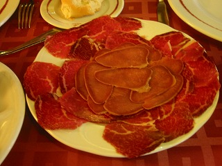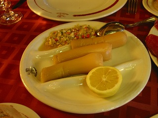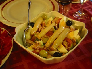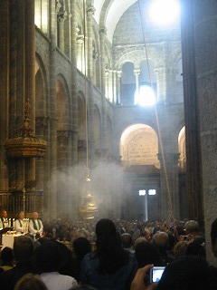 退職後の「ゆとり」と「こだわり」の旅 *< 夫婦で行く ゆったり・スペイン漫遊の旅 > ・・・・・ 総集編 ・・・・・ <クリック ************************ *< スペイン個人旅行 マドリッド観光 > <クリック *「マドリード市内観光+バル巡り」 ************************ 『夫婦で行く 北スペイン6日間の旅』 2006年 9月 サンティアゴのカテドラル(大聖堂)前にて 一日目 マドリッドから路線バスとタクシーでこの村へ到着。 前方の教会で、 旅の目的の「グレゴリオ聖歌」が聴けました。! 村の散策 1 村の散策 2 この村の小さなホテル泊 二日目 ブルゴスの町まで田舎道を 路線バスで移動しました。 『エル・シド』 大聖堂の前にて 大聖堂の横の巡礼路のシンボルの「ホタテ」 美味しい店だと土地の人に聞いたレストランで これから昼食です。 ・・・・何度も表彰されていました。 2階に上がったらこのようなレストランでした。 前菜 1 シャコ鳥のサラダ 前菜 2 名物の豆料理 ブロゴス名物、子羊料理 ブルゴス名物の「モルシージャ」 このレストラン自慢のデザート 昼食の後は町を散歩し、いろんな店をひやかしながら、 ホテルに戻ってシエスタ(昼寝)をしました。 丘から見えた夕日の『カテドラル』 昼寝の後、昔のお城があった丘に登りました。 そして町の中心の商店街を散歩して、ちょっと買い物タイム。 夕食は旧市街の居酒屋「TABERNA」と「BAR」で、 美味しい「タパス料理」を三品、 グラスワインでいただきました。 昼食をフルコースで食べたので、夜はこのぐらいで十分です。 歩いてホテルに着く少し前、また雰囲気のある居酒屋がありました。 グラスワインを一杯、つまみがサービスで出てきました。 旧市街のホテル 泊 三日目 ブルゴスからレオンの町までは、 路線バスで移動しました。 レオンの大聖堂 大聖堂の中のステンドグラス 1 ステンドグラス 2 名シェフと共に このシェフのお勧め料理をいただくことにしました。 まずは、レオンの名物、 セシーナ(牛の生ハム)とレングア(タンのハム) ねぎの前菜 ワインビネガのきいた、白アスパラのように柔らかく 「ねぎ」の旨味が最高でした。 特別サラダ シェフにお願いして、 胃を休める為に美味しいサラダを注文しました。 シェフの自慢のデザート 一人前を3人でいただきました。 ベンチに座る ガウディー レオンのガウディーの建築。 夜の町を散策 カテドラル 夕食は今夜もホテルの近くの「BARバル」で 『タパス料理』をつまみました。 旧市街のホテル 泊 四日目 朝食の後、散歩をかねて、電車の中で食べる 昼食の材料を公設市場に買いに行きました。 美味しかったレオン名物の「セシーナ」、「レングア」、 トマト、パンと「黒豚の生ハム」も仕入れました。 市場の魚屋さん レオン駅 これから電車で、サンチャゴに行きます。 電車の中で、市場で仕入れた材料で、 サンドイッチの昼食を食べました。 サンティアゴのカテドラル(大聖堂)前にて 名物の「ベルベレッチョ」貝 この後は、ガリシア地方名物のタコや帆立貝を レストランのカウンターで食べました。 今日のホテルは豪華なパラドールです。 五日目 朝は、カテドラル(大聖堂)のミサに行きました。 これが有名な『ボタフメイロ』 1 『ボタフメイロ』 2 『ボタフメイロ』 3 『ボタフメイロ』 4 公園から見たカテドラル(大聖堂) これから、このレストランで昼食です。 前菜はまずはこれ、「ペルセベス」 ガリシアの白ワイン「アルバリーニョ」で乾杯! 「ナバーハ」貝の鉄板焼き 魚介類が沢山入ったリゾット パラドールに戻ってシエスタ(昼寝) 夕食はまたまた居酒屋街でハシゴしました。 6日目 タクシーでホテルから空港へ行く途中、 『喜びの丘』に立ち寄りました。 巡礼者の目的地、 サンティアゴ・デ・コンポステーラが見える丘です。 この後、飛行機でマドリッドに戻りました。 お疲れ様でした! 今度は、アンダルシアの旅で お会いしましょう! ****************************** カテゴリー の中の 「 メールの送信 」、