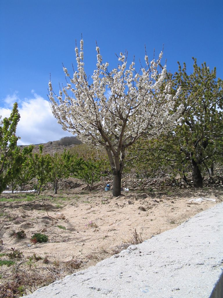 本日も晴天なり、なんとなくもう春が来るのを感じさせる、この木はさくらんぼの木、実の収穫は6月、花が咲くのが、3月の末から4月のはじめ、去年は満開の時期を逸してしまい、私が行った時はもうさくらんぼの花は終わっていた、タクシーを雇って必死に遅咲きの木を探し回った、これが唯一残されていた、遅咲きのさくらんぼの木だった、。。
